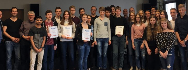 Höhepunkt des Festaktes stellte die Übergabe der Preise dar: „Von den über 1000 mathematikbegeisterten Schülerinnen und Schülern aus fast 50 Klassen und Kursen, die in diesem Jahr aus der Region Koblenz mit dabei waren, sind die Besten heute hier versammelt“ – mit diesen Worten zeichnete Wettbewerbsleiter Sebastian Bott folgende Gewinner aus: