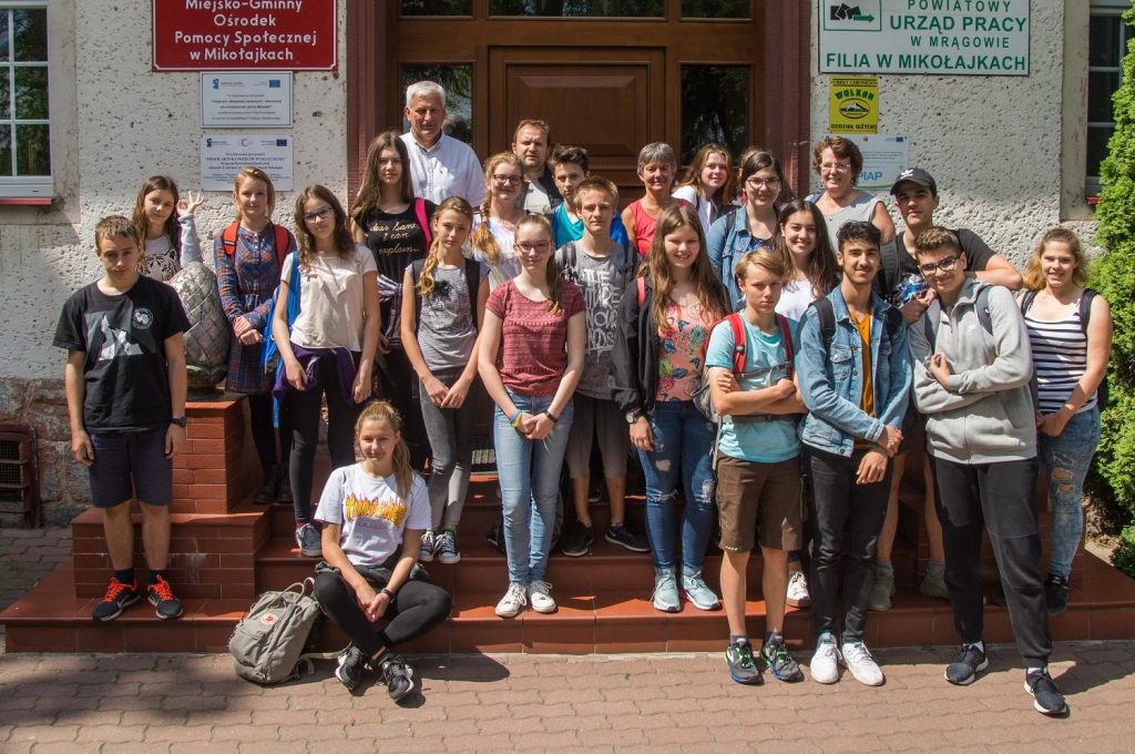 Polen gilt vielen als Land am Rande Europas. Doch geografisch liegt es mitten drin. Das Land beschäftigte die Schülerinnen und Schüler des Marion-Dönhoff-Gymnasiums auch in diesem Schuljahr. Eine Schülergruppe besuchte gemeinsam mit Frau Böhler und Frau Hildegard Sthamer die Partnerschule des Marion-Dönhoff-Gymnasium im polnischen Mikołajki. Die seit dem Jahr 2000 bestehende Schulfreundschaft mit der gleichnamigen Schule in Masuren wurde von Marion Dönhoff persönlich initiiert. Politisch sind die Beziehungen zwischen Polen und Deutschland derzeit eher angespannt. Doch die Divergenzen auf dem Feld der europäischen Politik spielten keinerlei Rolle während dieser ereignisreichen Fahrt. Die beteiligten „Lahnsteiner“ wurden herzlich willkommen geheißen und erlebten eine große Gastfreundschaft, insbesondere am ersten Wochenende, das sie komplett in den Gastfamilien verbrachten. Danach standen neben dem Besuch von Unterricht und der Arbeit in Projekten in der Partnerschule einige Exkursionen auf dem Programm: So unternahmen die Schülerinnen und Schüler in gemischten Gruppen eine Rallye durch Mikołajki, besuchten gemeinsam den „Salon Marion Dönhoff“ im nahe gelegenen Gałkowo und paddelten bei „Kaiserwetter“ auf der Krutynia.