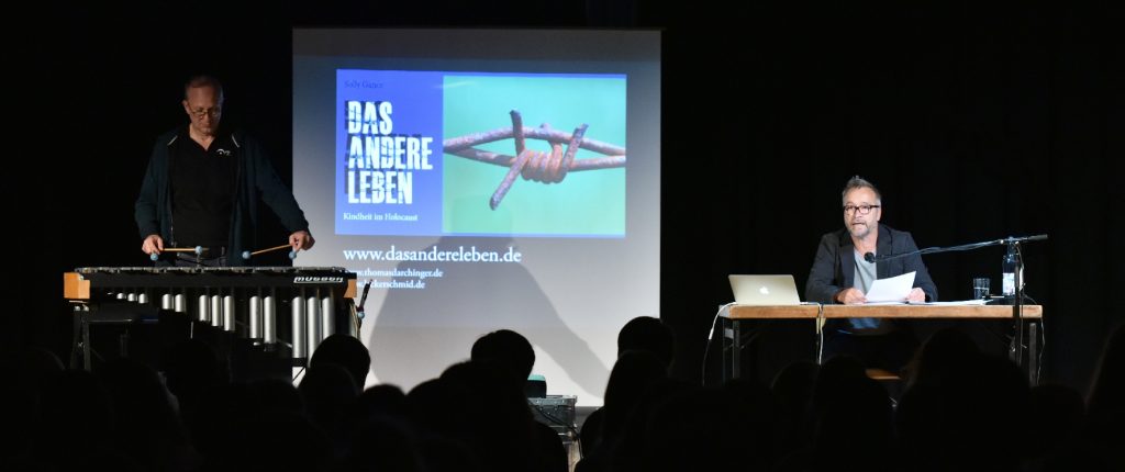 Der Schauspieler Thomas Darchinger liest im Forum des Erich-Läster-Schulzentrums aus Solly Ganors Autobiografie „Das andere Leben“, in dem der Autor über seine Kindheit im Holocaust berichtet. Eine besonders intensive Stimmung erzeugt Wolfgang Lackerschmid dabei mit dem Vibraphon. Junker