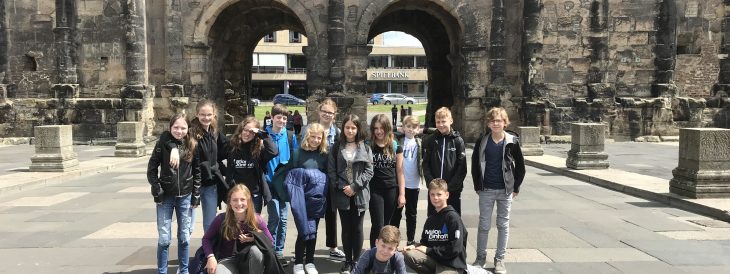 Der erste der beiden Exkursionstage führte in die älteste Stadt Deutschlands, die Colonia Augusta Treverorum, den meisten heute als „Trier“ bekannt. Dort mit Bus und Bahn angekommen, ging es nach einem kurzen Spaziergang zunächst einmal vom „Regional Express“ in den bei allen Kindern beliebten „Römer-Express“. Auf einer kurzweiligen Fahrt erhielten die SchülerInnen erste Eindrücke der geschichtsträchtigen Stadt und begrüßten die vorbeigehenden Passanten mit einem euphorischen „Salve“. Wieder am Startpunkt zurück, führte der Weg in den Trierer Dom. Nach der Besichtigung dieses beeindruckenden Kirchengebäudes ging es mit Zwischenstopp an der Konstantinbasilika ins Rheinische Landesmuseum, wo die SchülerInnen eifrig auf eigene Faust eine Museumsrallye absolvierten. Den Abschluss der offiziellen Besichtigungstour bildete das etwas außerhalb der ursprünglichen Stadtmauern gelegene Amphitheater, in dem heute noch Gladiatorenkämpfe oder auch Konzerte bestaunt werden können. Anscheinend waren die SchülerInnen nun auf den Geschmack gekommen, denn die sich anschließende verdiente Freizeit nutzten einige der SchülerInnen nach einer kurzen Stärkung zur Besichtigung der Porta Nigra. Wie geplant kam die Gruppe schließlich nach einem langen Tag am Oberlahnsteiner Bahnhof an.
