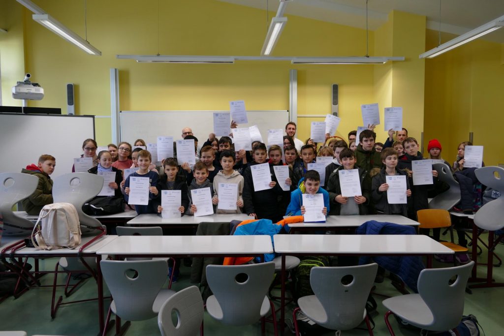 Trotz verständlicherweise teils großer Nervosität – wann präsentiert man mit 10, 11 oder 12 Jahren schon einmal etwas vor mehr als 50 Mitschüler*innen zuzüglich Lehrkräften und Studenten? – gaben sich die Schüler*innen sehr professionell und präsentierten stolz, was sie in den vorangegangenen 2 1/2 Unterrichtstagen erforscht, berechnet und herausgefunden hatten.