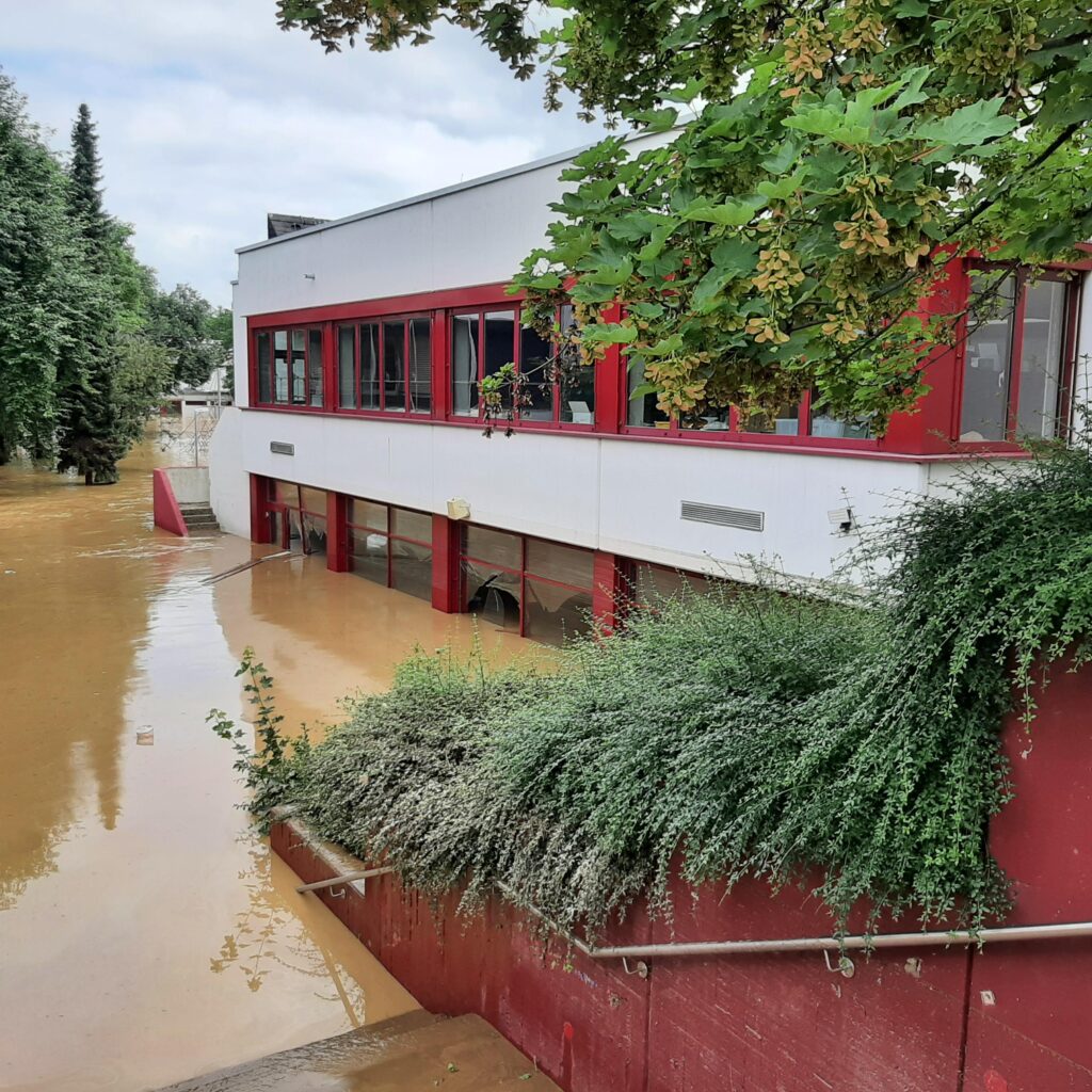 Erste Etappe in Ahrweiler war die Scheckübergabewomit man sich der 14.150,00 Euro für das Sinziger Gymnasium entledigt hatte. Es folgte eine sehr eindrückliche Führung durch die vier Gebäudekomplexe der Boeselager-Realschule plus, deren Infrastruktur im Erdgeschoss in der Flutnacht nahezu vollständig zerstört worden war, 2 Meter, so Schulleiter Timo Lichtenthäler, sei der Wasserpegel in den Unterrichtsräumen, in der Turnhalle, in den Chemie- und Werkräumen hoch gewesen und damit auch die gesamte Haustechnik im Keller nicht mehr einsatzfähig.