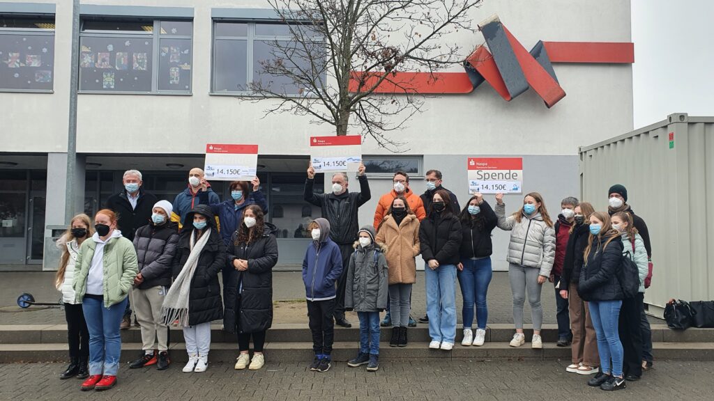 42.450,00 Euro hatten die Schüler:innen seinerzeit an einem sonnigen Herbsttag im Oktober 2021 in zig Runden auf dem heimischen Sportplatz erlaufen. Anteilig zur Schülerzahl beider Schulen war die Summe durch drei dividiert worden, so dass zwei Realschulen plus und ein Gymnasium im Ahrtal begünstigt werden konnten. Neben der Boeselager-Realschule plus war dies die Erich-Kästner-Realschule plus in Bad Neuenahr-Ahrweiler und das Rhein-Gymnasium in Sinzig, dort, wo die Ahr in den Rhein mündet.
