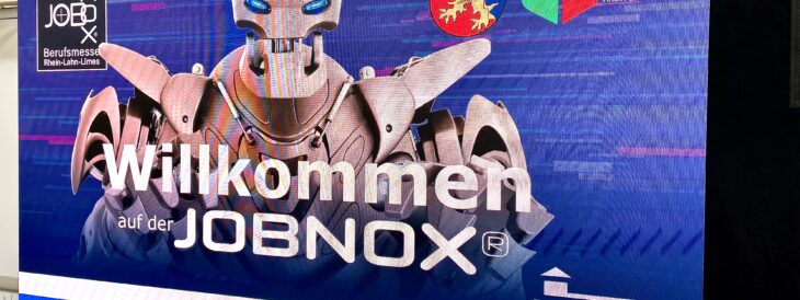 Begeistert von dem Messe-Angebot zeigten sich am 14. Juni die Lahnsteiner SchülerInnen der Jahrgangsstufen 10 bis 12, die in drei Bussen, finanziert durch den Rhein-Lahn-Kreis, in Begleitung von Ina Dammann (Schulleitung) und Sabine Hann (Koordinatorin Berufsorientierung) angereist waren. Fachvorträge und Kurzimpulse ergänzten die mehrheitlich interaktiv angelegten Info-Stände des breitgefächerten Firmenspektrums. Für das leibliche Wohl war gesorgt und die heimischen Branchen verteilten jede Menge Give Aways. Die JOBNOX als Kontaktbörse und für die Stufe 11 sicherlich auch als Praktikumsbörse machte Spaß und Lust auf einen Job im heimatlichen Lebensumfeld. Zahlreiche SchülerInnen kamen freiwillig am zweiten Tag der Veranstaltung noch einmal wieder, um ihre Erlebnisse und Berufswünsche mit ihren Familien zu teilen.