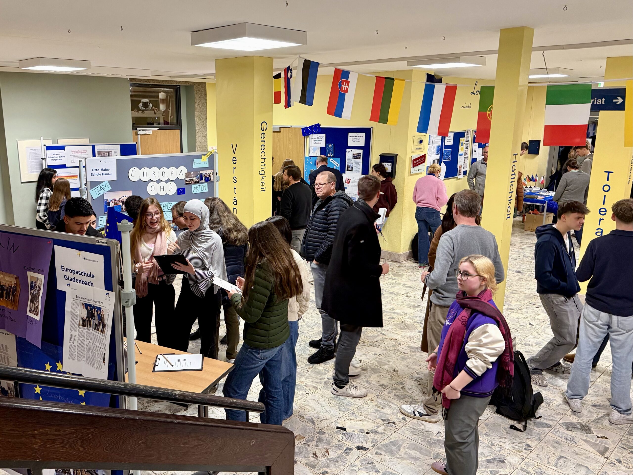 Europa lebt von Begegnungen, Austausch und gemeinsamen Ideen – und genau diese Grundhaltung prägte die diesjährige Botschafterkonferenz des Europäischen Parlaments, die am 6. und 7. November am Marion-Dönhoff-Gymnasium Lahnstein stattfinden durfte. Als Europaschule und Botschafterschule des Europäischen Parlaments freuen wir uns besonders, dass wir Gastgeber für Schulen aus verschiedenen Bundesländern sein konnten, von Rheinland-Pfalz, dem Saarland, Baden-Württemberg, Hessen, über Nordrhein-Westfalen bis Niedersachsen. Das Verbindungsbüro des Europäischen Parlaments ermöglicht diesen intensiven Austausch.