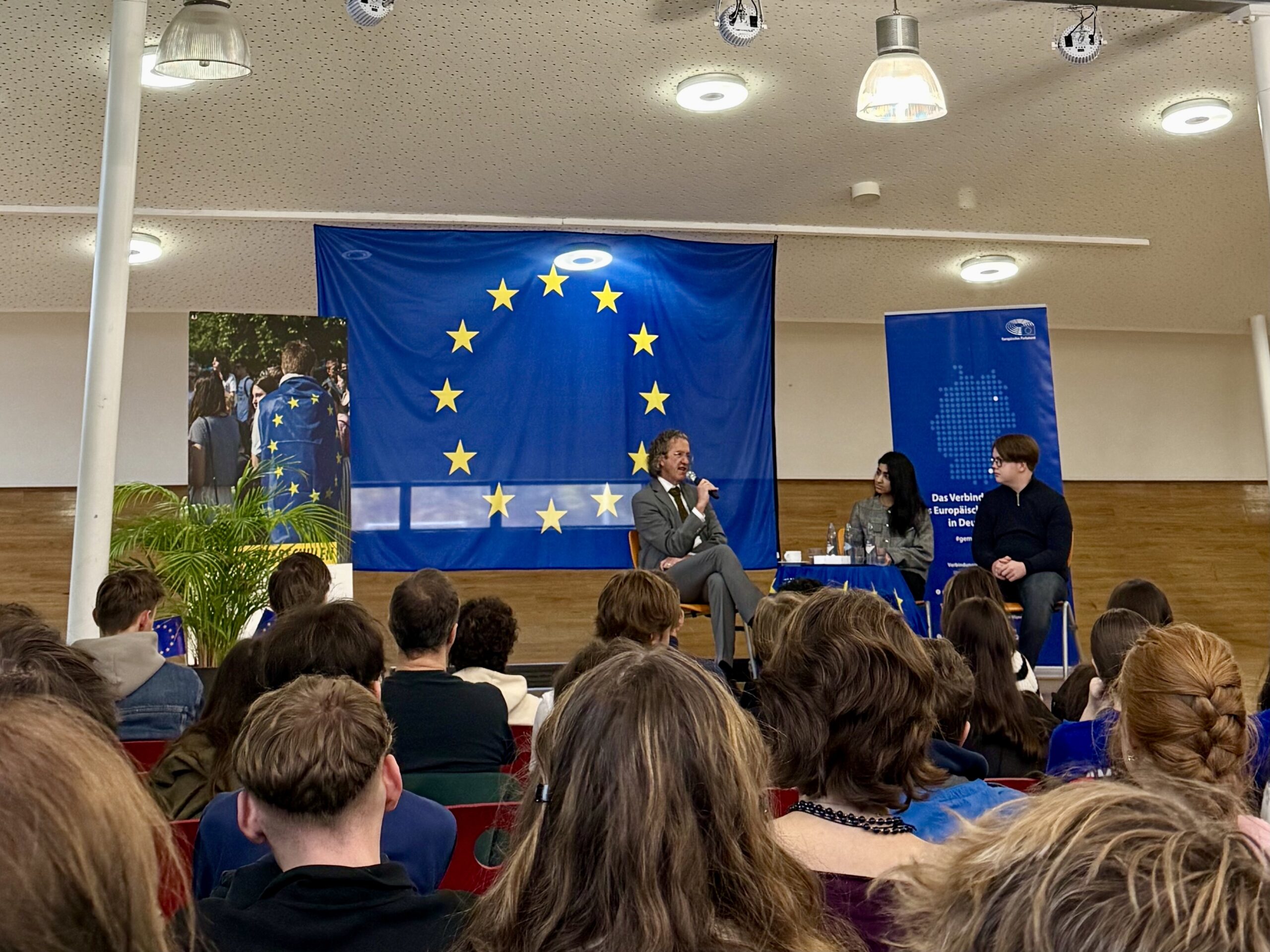 Ein Höhepunkt war die Podiumsdiskussion mit dem Europaabgeordneten Joachim Streit (Freie Wähler), der offen über politische Entscheidungsprozesse, Herausforderungen und Visionen zu den Schüler/innen sprach. Die Schüler/innen nutzten die Gelegenheit, Fragen etwa zum Wahlrecht ab 16, zur Migrationspolitik oder zu Verteidigungs- und Haushaltsfragen zu stellen. Dieser direkte Dialog wurde von vielen als besonders gewinnbringend erlebt, weil politische Themen hier greifbar wurden und mit persönlicher Erfahrung verknüpft waren.