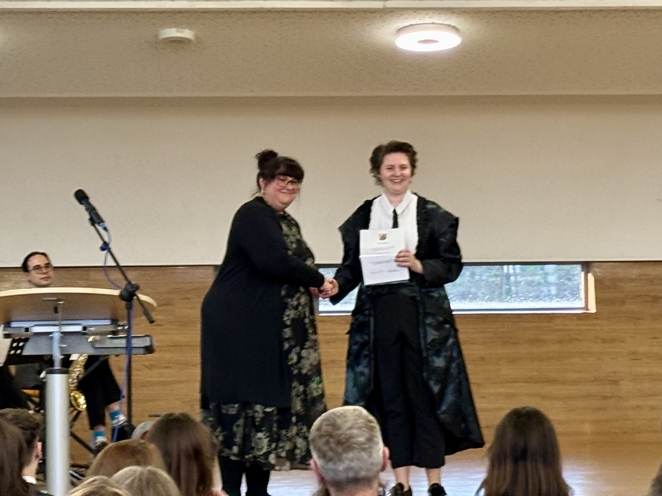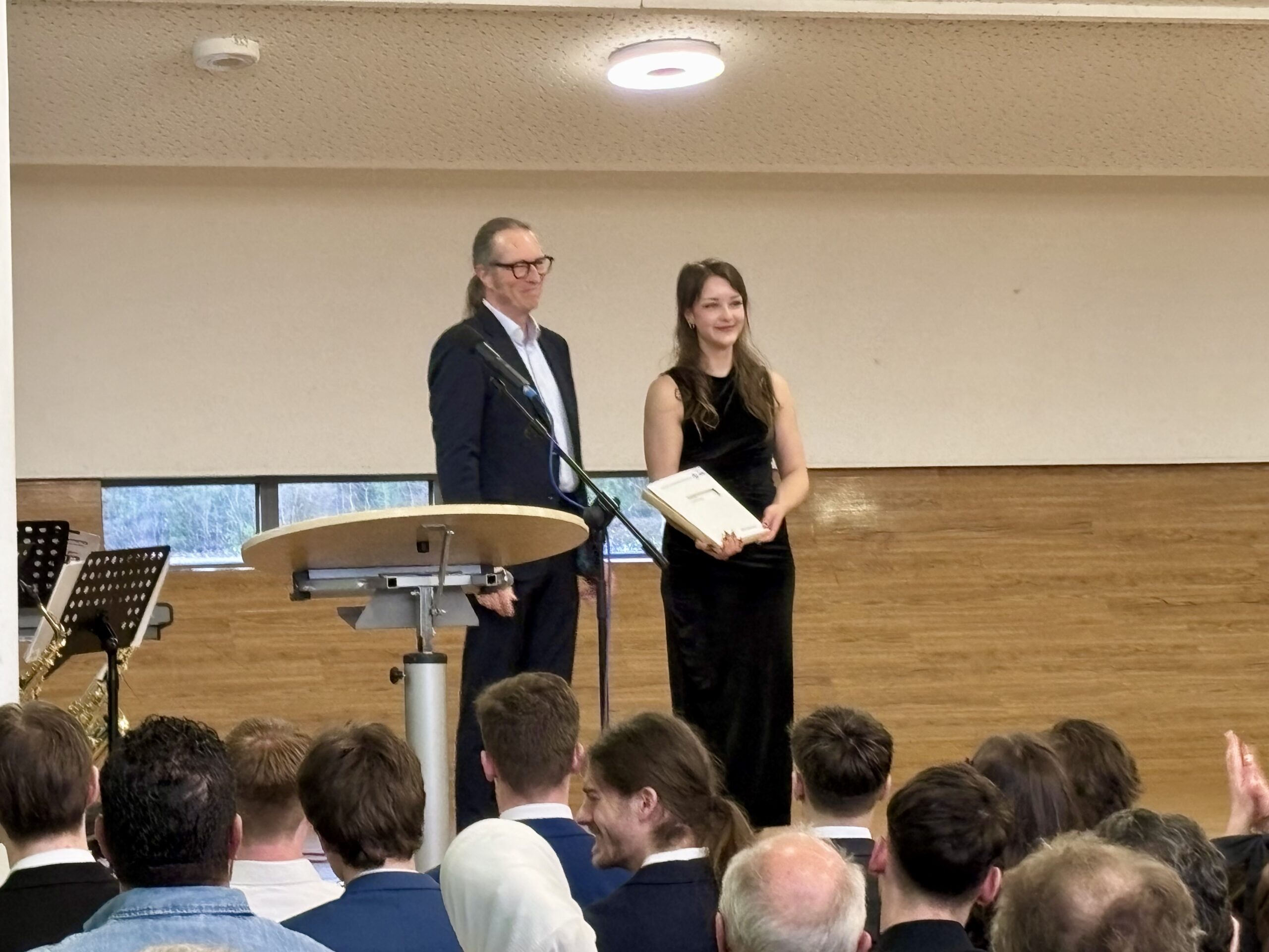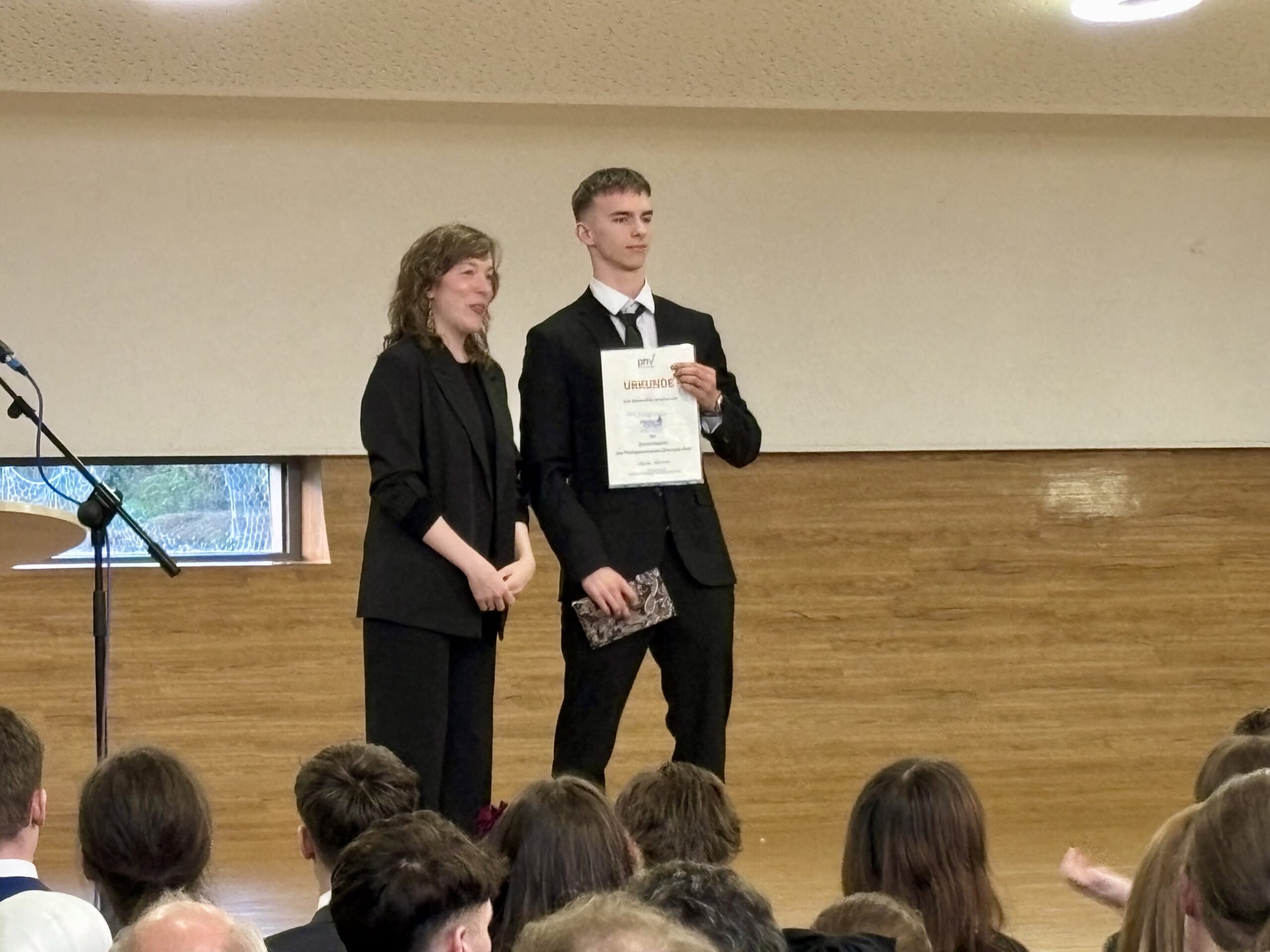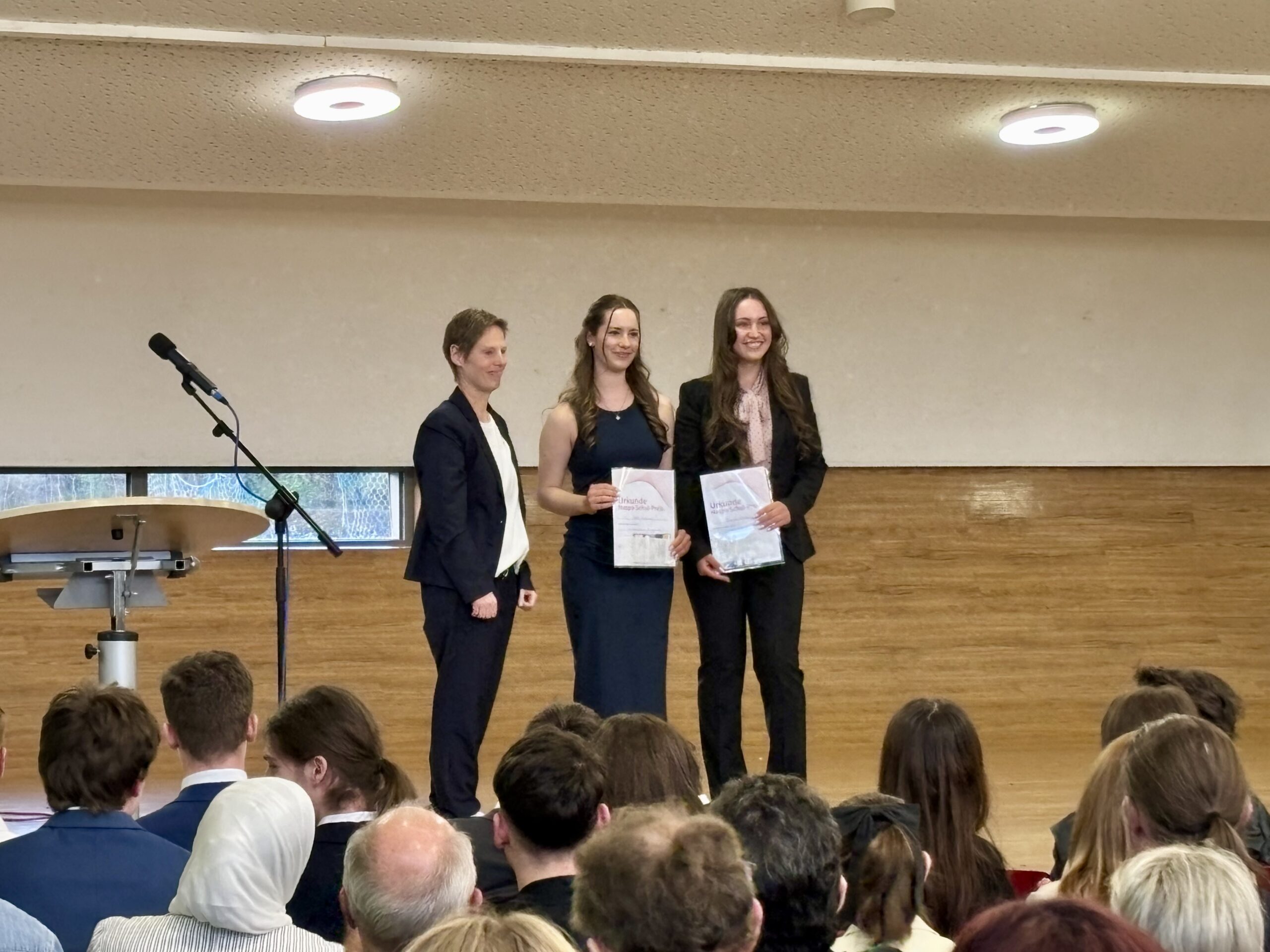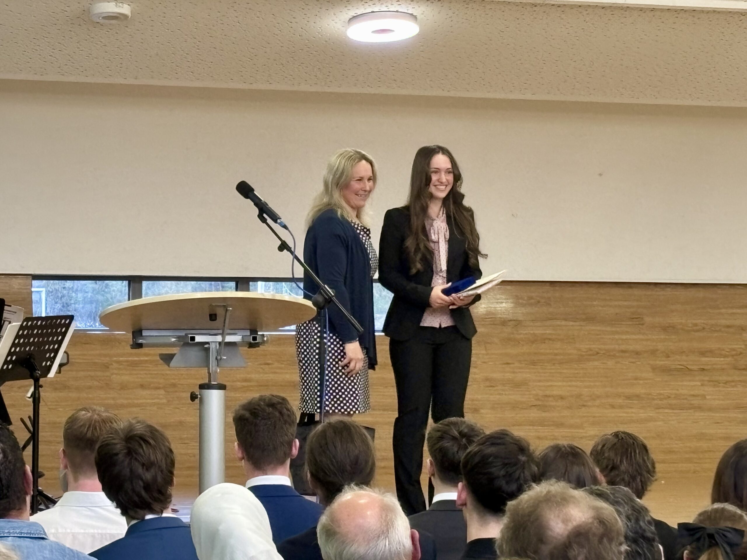 Den Preis der Ministers erhielt dann auch Annalena Schall für ihr herausragendes Engagement. Der Naspa-Schulpreis wurde stellvertretend für die Naspa von Stefanie Schmidt an Jette Hasenberg und Yasmina Schulz verliehen. Das beste Abiturzeugnis konnte Leonie Kolb (1,5) erzielen, hierzu wurde ihr von dem Vorsitzenden des Vereins der Freunde, Ralph Steffens, herzlich gratuliert. Fachpreise wurden an besonders talentierte Schülerinnen und Schüler verliehen: Der Preis in Physik ging an Leonie Kolb, in Geschichte an Karol Nieczyperowicz und in Sport an Yasmina Schulz.