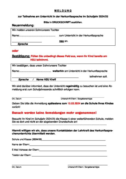 Startseite » Service » Formulare » Anmeldeformular HSU für das Schuljahr 2024-25